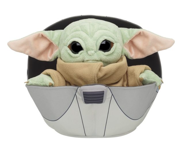 Don’t forget the Mandalorian! This online exclusive plush comes with a built-in body suit, equipment belt, face mask and a sound chip that features the show’s theme song.