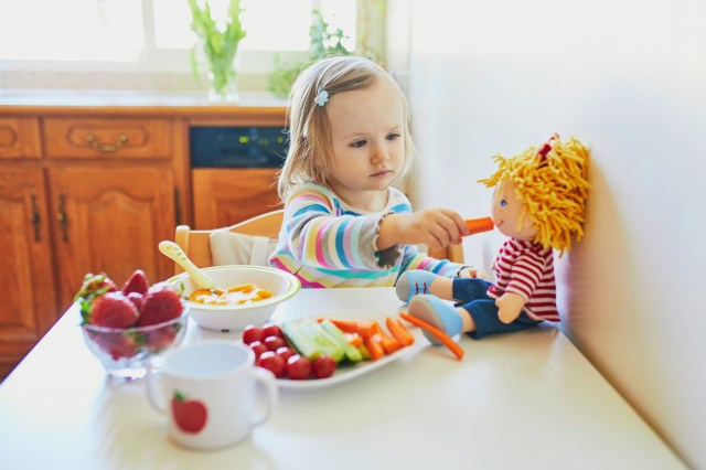 Meals should be balanced and offer foods from all five food groups. And more importantly, toddlers should be encouraged to eat from all food groups at every meal. It might seem like you’re being flexible to let your child skip an entire food group at a meal, and sure, that may be okay here and there, but too often may risk your child not getting enough of an important set of nutrients.
