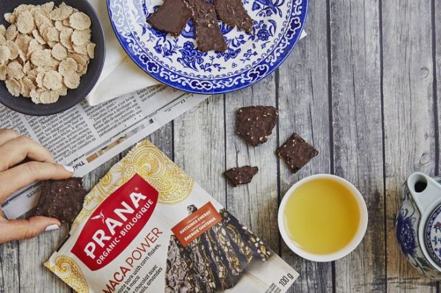 Chocolate as a snack, you say? This isn't your ordinary candy bar. PRANA offers up "superbarks" made from fair trade chocolate and key ingredients. The PRANA Chia Balance—dark chocolate bark with caramelized coconut & probiotic chia—is not only incredibly delish, but it is also nutrient-dense with pumpkin and sunflower seeds, probiotic chia seeds and is even a great source of fiber. There's even 4g of protein in a serving. The Maca Power version—dark chocolate bark with corn flakes, almonds and maca—provides sustained energy with 4 g of protein, ancient grains and maca, which has a positive effect on memory, energy and mood. There are seven barks to choose from.