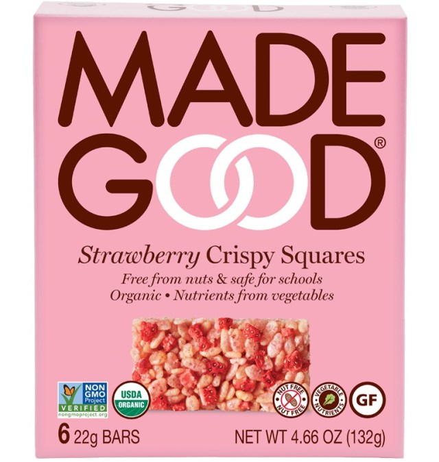 Looking for a healthier lunchbox treat that is actually more delicious than a traditional, sugar-packed cereal treat bar? Made Good's Caramel Crispy Squares and Strawberry Crispy Squares are divine. They are free from nuts and other common allergens, including peanut, dairy, egg and soy, so they are totally safe for school lunches. Sweetened with cane syrup and made with brown rice crisps, these delicious snack bars might make their way into mom or dad's own lunchbox, too. They also come in Vanilla and Chocolate Chip.