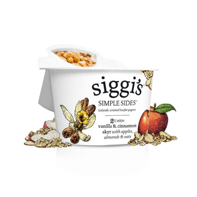 Siggi’s Icelandic skyr is already super delicious, but they’ve taken it to the next level with their newest release, Simple Sides. It has their signature 2% skyr (if you haven’t had it before, it’s similar to Greek yogurt and also packs in a ton of protein) on one side, and the other side has a complementary topping. Vanilla yogurt is paired with almonds and dried cherries, honey yogurt goes with dried figs and walnuts, and apples, almonds and oats get sprinkled on vanilla and cinnamon yogurt.