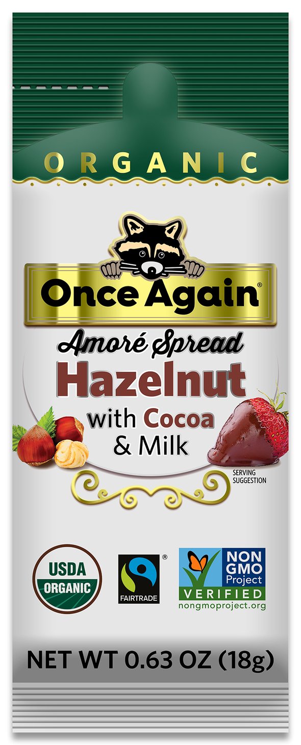 Once Again Amore Organic Hazelnut Spread with Milk Chocolate Squeeze Packs