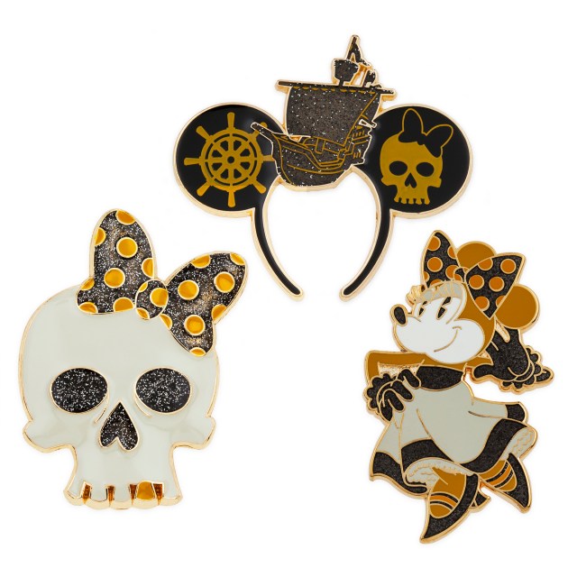 Ahoy matey! Minnie Mouse is on a swashbuckling adventure with the Pirates of the Caribbean. The black and gold-toned collection features six pieces that include a plush, mug, ears, Magic Band, pins and hip pack.