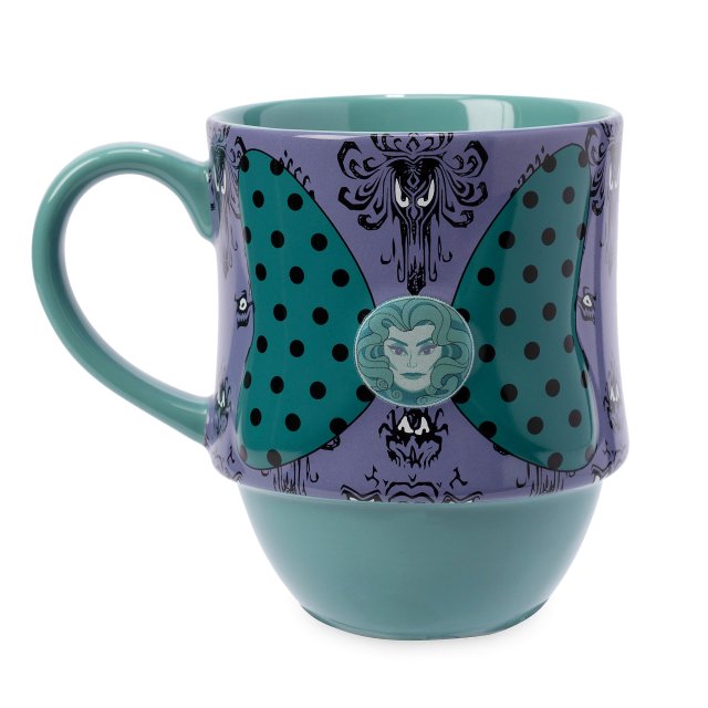 Minnie Mouse is ready for the spooky season. Outfitted in perfect Haunted Mansion attire, this leading lady’s gown is fashioned from the famed attraction’s wallpaper, in addition to wearing a Madame Leota hat with fishnet veil. Other items in this release include a headband, hip pack, pin set and mug.