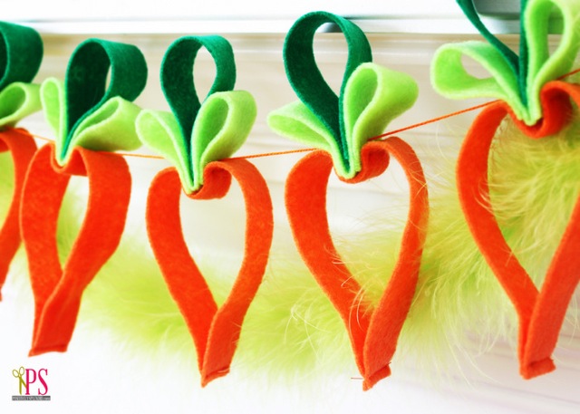 This garland may look a little complicated, but if you’ve got a sewing machine and a free afternoon, it won’t be too hard to pull off. The little ones can help fold the felt to make carrot shapes, and then you can easily stitch it up and hang it over the fireplace. Stop by Positively Splendid for step-by-step instructions and pictures.