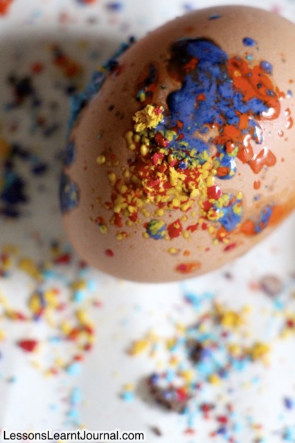 Dyed eggs are a thing of the past thanks to this awesome idea from Lessons Learnt Journal. Crayon shavings melt beautifully on top of a fresh hard boiled egg to make a unique look each time.