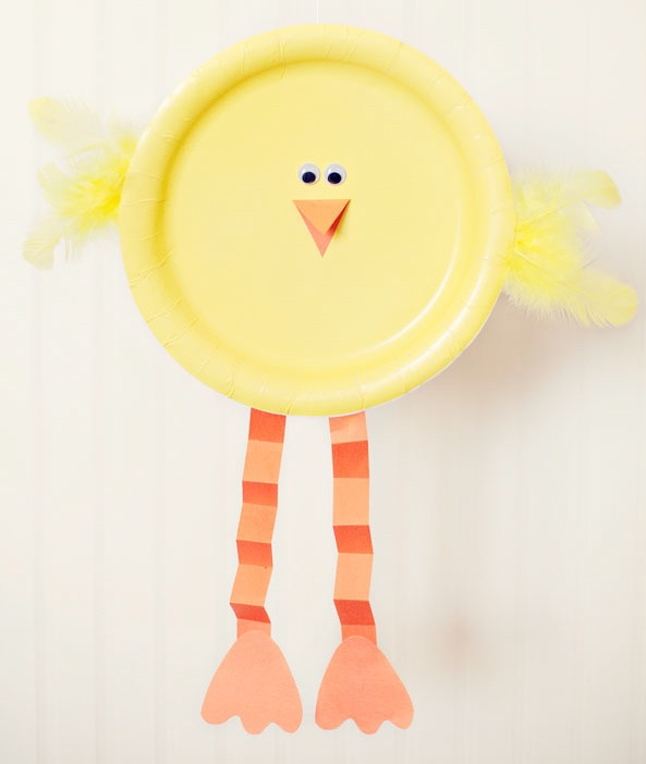 Here’s a bright idea from Simple As That–a happy baby chick made out of a paper plate and a few scraps of paper. Little ones can take the reins on this craft; with a few snips of the scissors and swipes of the glue stick, they’ll have created a masterpiece in no time.