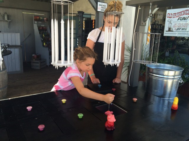 Pop into Toby's Candle and Soap Shop to experience candle-making as it was done in the "old days." Kids can choose a candle figurine (boat, train, animal shapes, etc., are available) and then dip their figure in different wax colors to make a take-home candle souvenir. Other activities include making a sand wax or kaleidoscope candle, and prices are from $5-$32.