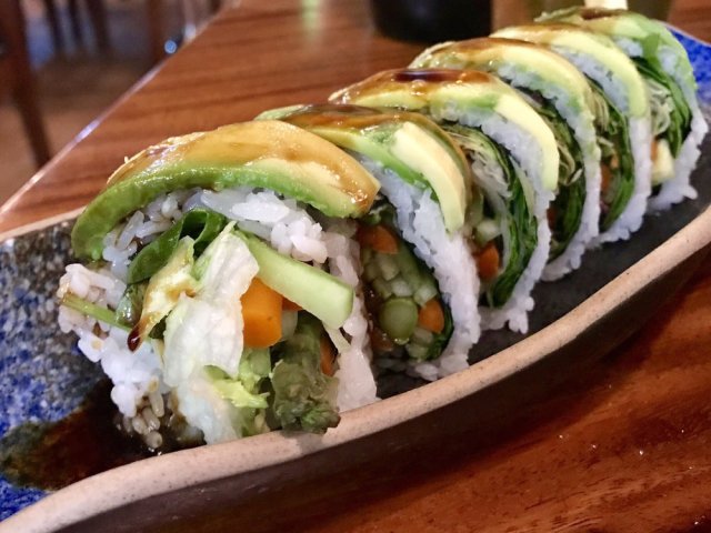 With a nod to both meat and vegetarian options, go to Umami for sushi and dim sum. For dim sum, the bao buns with soy-braised pork-belly or caramelized onion and mushroom hit the spot. Likewise, the veggie caterpillar roll or spider roll (with soft shell crab) is a winner. Even more, there's a kids' menu with choices like teriyaki chicken or gyoza with rice and soup ($7). The whole fam is sure to enjoy this dining spot.