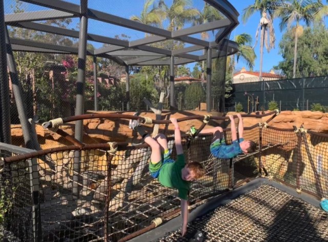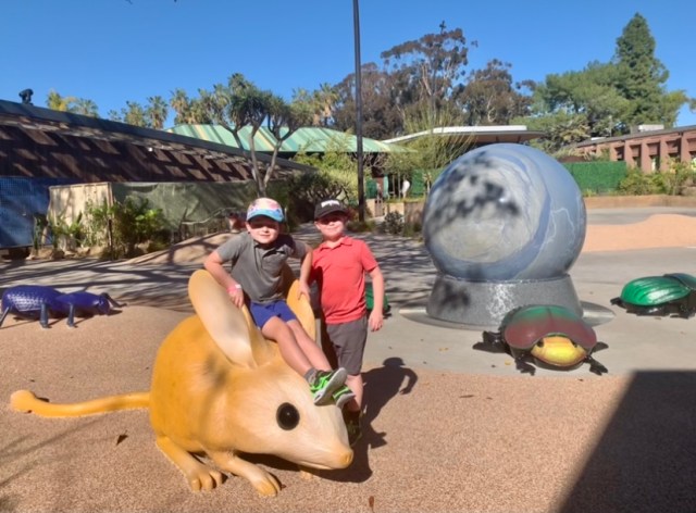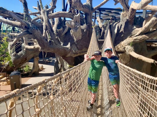 The new San Diego Zoo Wildlife Basecamp is now open and ready for you to jump in, climb up, splash and explore all around! Kids will discover four habitat areas where they’ll play right next to each animal species that lives there. Two indoor buildings house rare and spineless species for kids to discover like the axolotl and leaf bugs that look exactly like leaves. Peek directly inside a working bee hive, a live ant colony or into the naked rat tunnels. This new Basecamp is huge and there’s something for everyone whether you like bugs, monkeys or porcupines. Here’s your insider’s sneak peek into the brand new Basecamp!