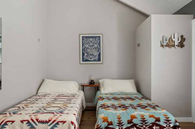 Swap the surf for the snow and escape to Big Bear this fall or winter. This quintessential Big Bear cabin, located in the heart of Sugarloaf, is the perfect spot to call home for a long weekend. And, don't worry about leaving Fido, this AirBnB takes dogs (with an extra cleaning fee). The open-plan living area features wood floors, vaulted ceilings, and a contemporary couch. From teal floor cushions to patterned area rugs to soft blankets, you’ll love all the cool accents. There’s even a foosball table if you and your crew feel like some friendly competition!