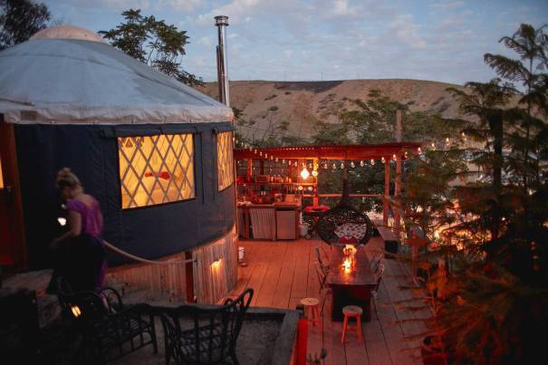 Experience this down-to-earth family yurt in Paradise Hill near Las Angeles. It’s sparkling clean, with self check-in, and you get the whole place to yourself. Located on an urban farm with goats, chickens and a pig next door. You'll find a full outdoor kitchen, claw foot garden (solar) bathtub with hot running water. There are steps, so for toddlers, this yurt may be a challenge. Yurt starts at $149 plus per night.