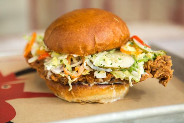 Take a crack at Crack Shack's Coop Deville! This local eatery is known for its fried crispy chicken breast that’s super moist on the inside. The chicken in this sandwich is topped with pickled Fresno chilies, pickles, lime mayo and Napa cabbage on a brioche bun. Order up biscuits and deviled eggs, and you'll be in foodie heaven.