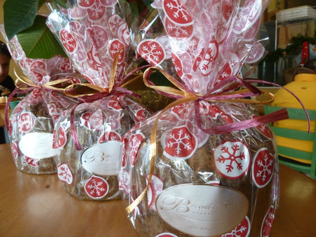 Why, yes, this is the very same Bread & Cie you’ll find in some supermarkets around San Diego. While theirPanettone (the candied and crystalized fruit and raisin bread) will dazzle, their everyday breads will warm the hearts of your family, friends and neighbors. Plus, they offer holiday sugar macarons, cinnamon rolls, eclairs, tarts…the list goes on and on.
