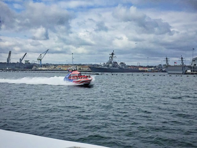 All Aboard! If you’ve ever been on a boat, you’ve never been on a boat like The Patriot Jet Boat before. Feel the wind (and water!) in your hair while zipping around the San Diego Bay. The Patriot zooms up to 50 mph while doing spins and fast turns all to some rockin’ tunes blasting over the speakers. In between the thrills, you’ll enjoy a narrated tour of the Big Bay going all the way down to the Coronado Bridge and back to the Embarcadero. Water ponchos optional!