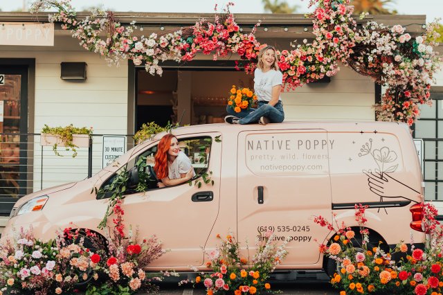 Talk about flower power! Natalie Gill established Native Poppy in 2015 to create joy by making art with her friends. She started her flower-arranging business in her backyard alongside Meghan Blancato who became a partner in the business in 2018. Their business grew into a brick-and-mortar flower shop with two locations: South Park and Solana Beach. In their own words, they “believe in taking care of the environment and drinking champagne, in stopping to cuddle and befriending every animal we see. We believe in singing while flowering and in always challenging ourselves and our peers to be better, all the while affirming each other for where we are today.” What a great place to bloom and find the best blossoms.