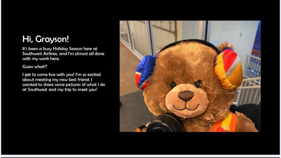 Before Grayson’s bear, named Jack, arrived at his new home he took up temporary employment with Southwest.