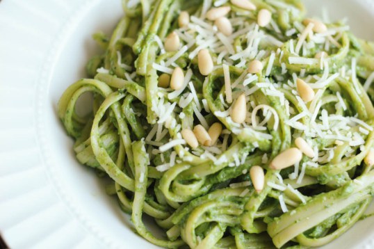 This lightened-up pesto recipe swaps the traditional olive oil for avocado, making it a great option to get some extra veggies into your tot’s diet. Top with a generous sprinkling of parmesan and no one will know the difference. To get the full recipe, click here.