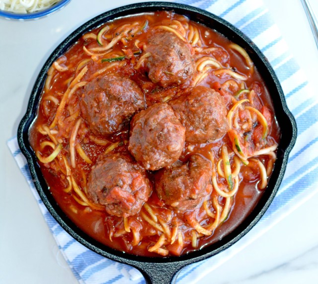 Give your usual noodles a twist! Zoodles with meatballs is a great veggie-ful meal that still has all the slurpable goodness of your favorite pasta. Grab your spiralizer and get the recipe from My Flourless Kitchen.