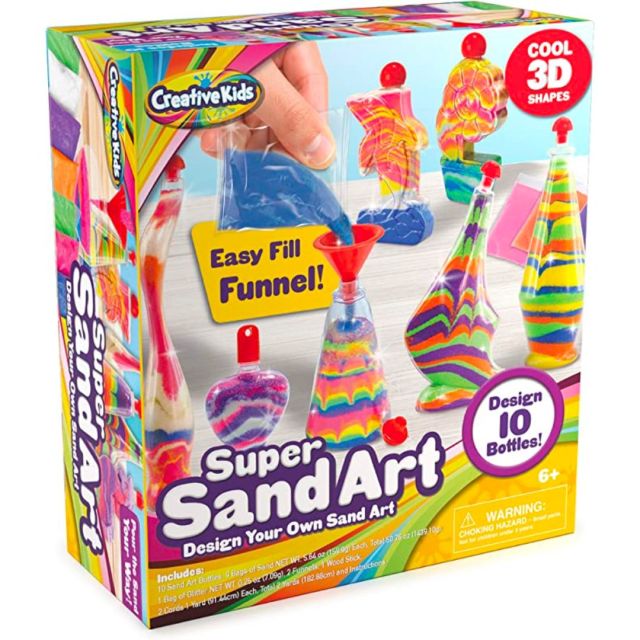 This kit includes 10 bottles, lots of sand options (including glitter!), and easy-to-fill funnels!