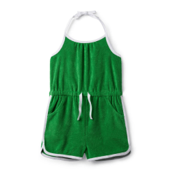 $27.99 BUY NOWBright green hues and comfortable terry cloth make this romper a fun addition to a child’s summer collection.