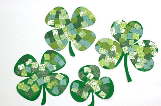 Let your kids get their craft on with these fun mosaic paper shamrocks from Happiness is Homemade. Simple paper shamrocks are covered in multi-colored squares for a handmade and unique craft that's perfect for St. Patty's.