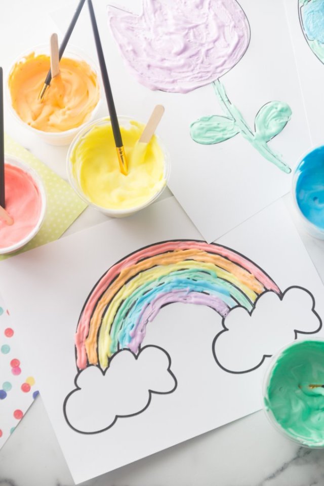 This simple St. Patrick's Day rainbow coloring page opens up a world of possibilities for your little artist! Sarah McClelland from Little Bins for Little Hands has it for you, along with a great recipe for puffy paint!