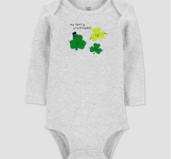 $7 BUY NOWAvailable in sizes newborn through 12 months, this adorable onesie is perfect for baby's first St. Patrick's Day.