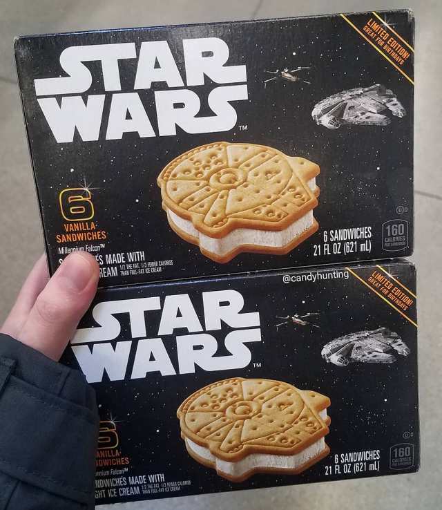 These limited-edition ice cream sandwiches feature vanilla ice cream sandwiched between vanilla cookies in the shape of Han Solo’s infamous interstellar ship.