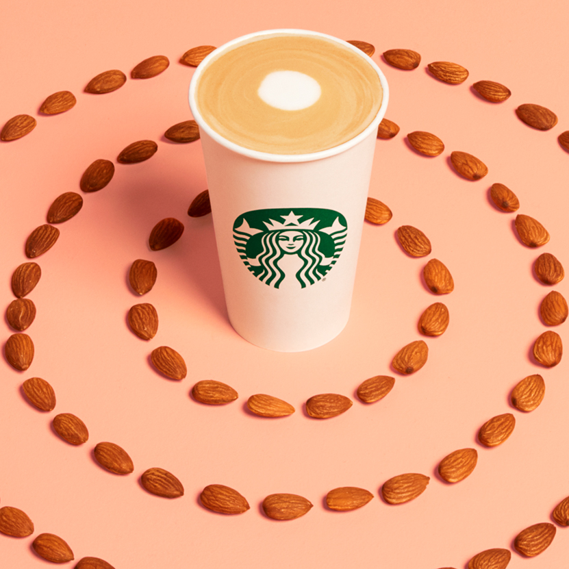 The Almondmilk Honey Flat White combines ristretto shots of Starbucks Blonde Espresso with steamed almondmilk and a hint of honey. The Coconutmilk Latte combines shots of Starbucks Blonde Espresso with steamed Coconutmilk and a pinch of Cascara sugar on top.