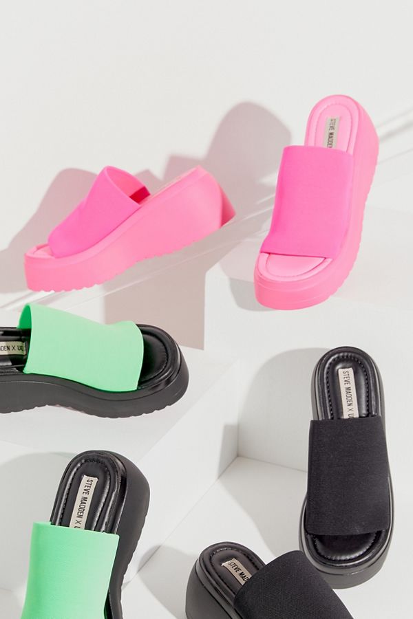 Steve Madden has teamed up with Urban Outfitters to bring back the uber-popular platform slides. The perfect summer shoes are apparently still so popular that they’ve already sold out online in just a few days. Re-released in the original black color, as well as two new modern editions in black with a neon green strap or a completely hot pink pair, all three color selections were selling for $70 at Urban Outfitters. They are currently sold out, but hopefully with such an incredible demand the company will stock more.