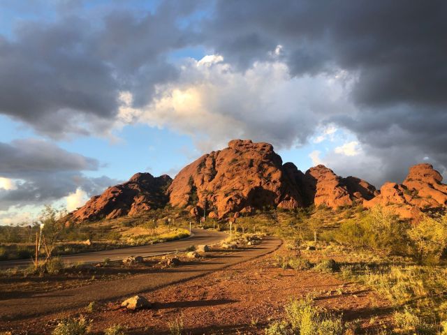Papago Park to Papago Golf Course Loop is a 2.7 mile moderately trafficked loop trail located near Tempe, Arizona that offers scenic views and is good for all skill levels. The trail is primarily used for walking, running, road biking, and mountain biking and is accessible year-round. This is an easy paved path perfect for families and those looking for a leisurely bike ride.