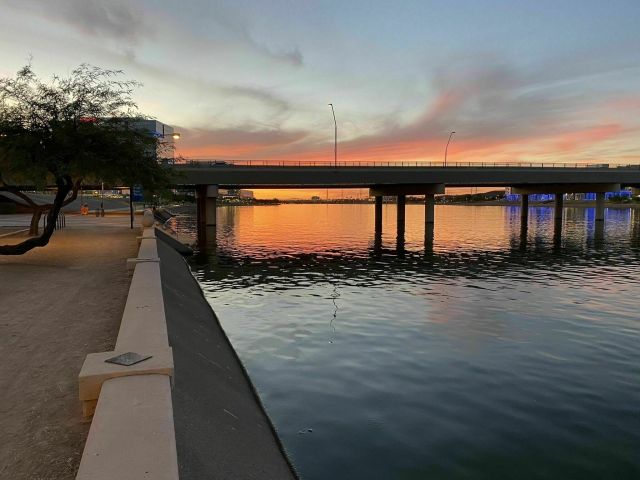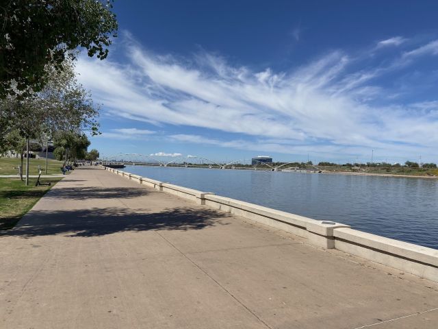Tempe Town Lake Trail is a heavily trafficked out and back trail located near Tempe, Arizona that features a lake and is good for all skill levels. The trail is primarily used for walking, running, road biking, and canoeing and is accessible year-round. Dogs are also able to use this trail.