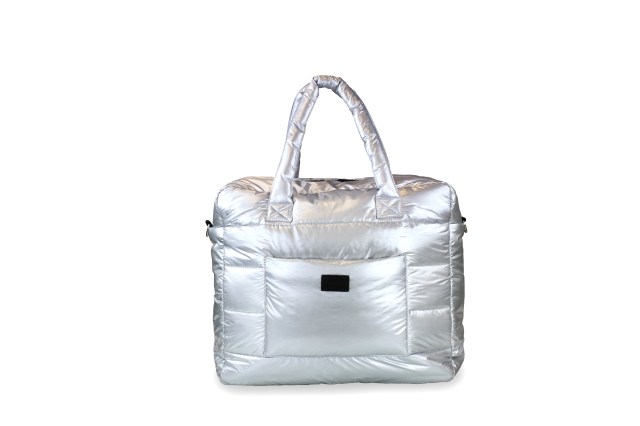 The rectangular shape of this bag hides the fact that it's a diaper bag and gives you lots of room for taller items, like books, a laptop, blankets, stuffed animals and more. The bag contains five elasticized interior pockets and an exterior front pocket with zippered closure. The handles are cushioned for your comfort, and there's a fleece-lined, padded changing pad to keep baby comfortable during diaper changes. Use the included strap to attach the bag to a stroller. Comes in silver, black and camo. You'll be using this bag long after your child is done with diapers.