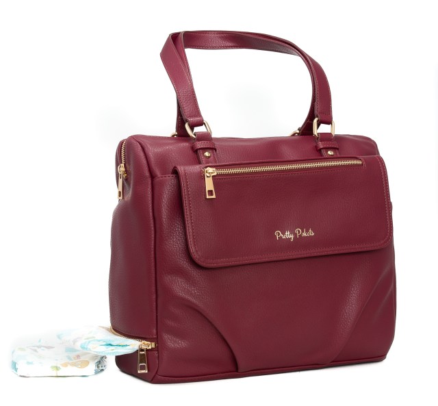 This may look like a traditional diaper bag, but it has a clever way to snag a diaper without having to dig through your purse. Store a stack of diapers in the bottom of your bag, and you'll just need to unzip a special zipper to grab one. There's also a pocket just right for wipes and a special pocket for storing trash bags (for wrapping soiled diapers or even picking up dog poop while you're at the park). The vegan leather exterior is wipeable, and the interior fabric is spill-resistant. This bag boasts 11 pockets and an adjustable cross-body strap. It comes with a nylon changing pad, small purse for money and credit cards, and an insulated bottle holder, all in the same color as the bag exterior. Pretty Pokets also makes totes and backpacks.
