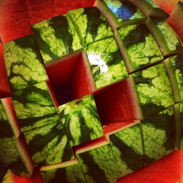 Cut your watermelon into easy to hold sticks instead of cubes. This way you save on utensils. Freeze the sticks to make uber-healthy popsicles. Need tips on cutting that watermelon? The Girl Who Ate Everything makes life easier with picture tutorials.