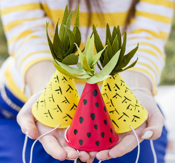 How adorable are these fruit-inspired party hats from Studio DIY? Easy to make, they can double as a party favor! We’ve got even more fun paper hats here.