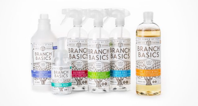 Getting rid of harmful chemicals and swapping for nontoxic cleaning alternatives just got easier. Branch Basics best-selling multi-purpose Concentrate makes cleaning simple with a nontoxic formula that is safe for families and can be mixed with water to make a variety of cleaners, including bathroom, all-purpose, hand soap and even laundry soap. Each product is human safe, plant and mineral-based, biodegradable, non-GMO, not tested on animals and free of harmful preservatives.