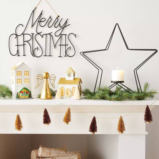 Oh, hello mini bottle brush garland! Great for horizontal or vertical you can decorate your fireplace or simply hang it on the living room wall or door for a welcoming seasonal vibe.