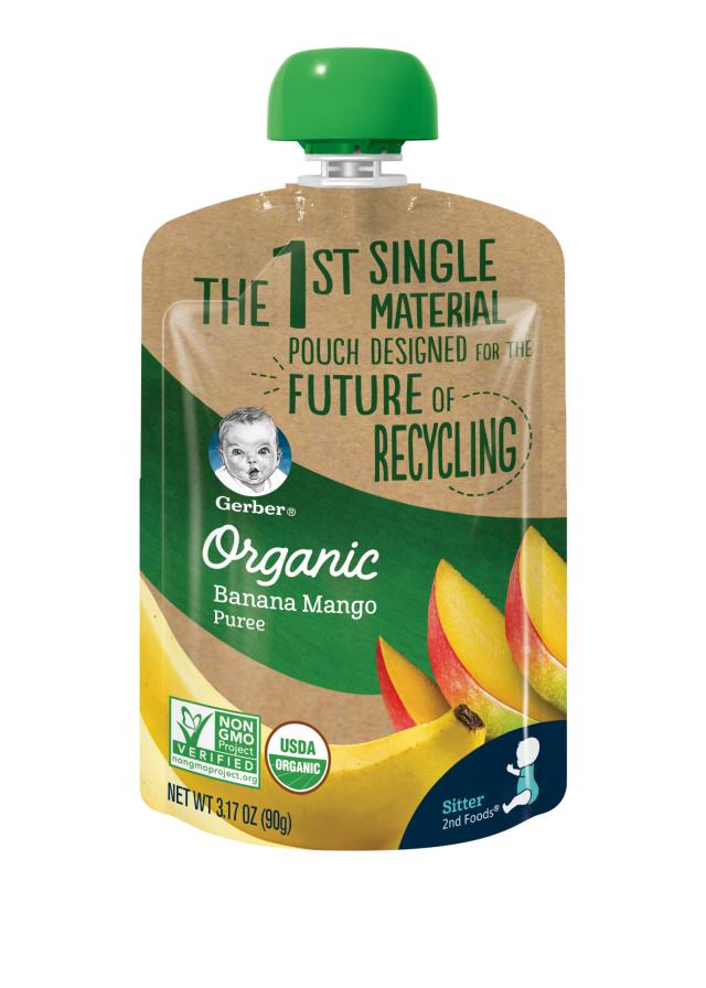 There are tons of Gerber products you can recycle, like baby food packaging (but no glass!), shrink labels, plastic containers, plastic lids, flexible plastic pouches and small and large hook Gerber baby clothing hangers. Once you have a full box of products, just send in with a free label and your products will be recycled free of charge.