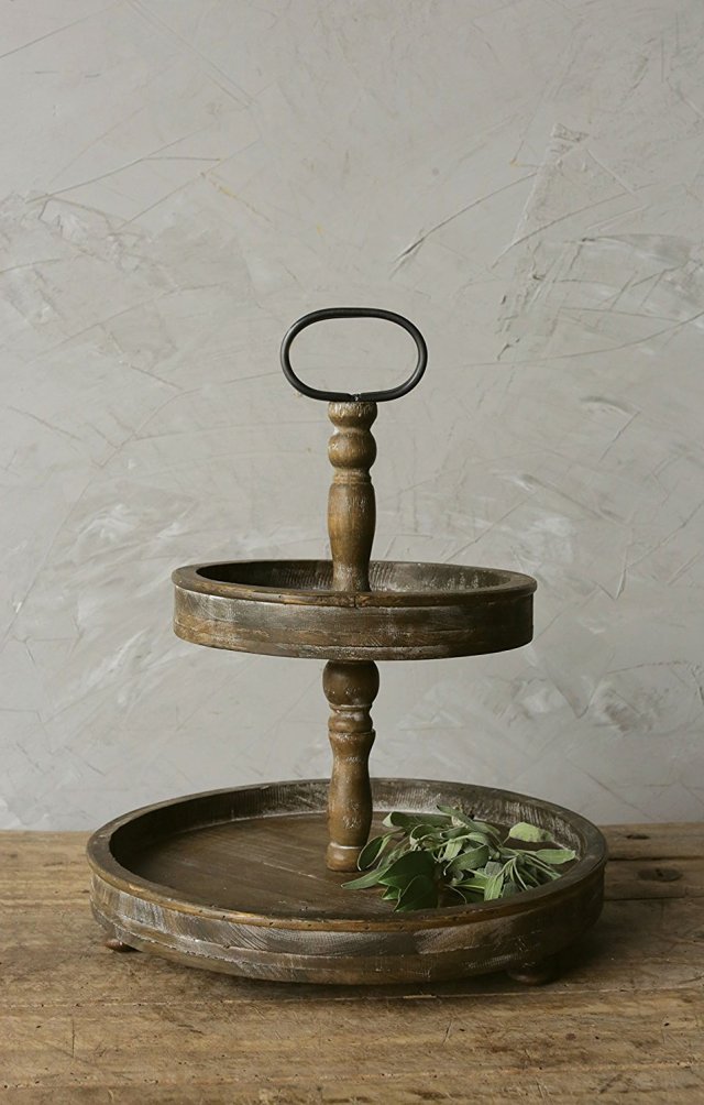 Cake stands hold more than just cakes—they take on pie, cupcakes and can even just serve as a decorative item. This rustic metal cake stand comes with tons of detail, from the metal and wood vintage look to the scalloped design.