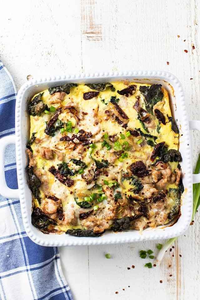 Make this delicious sausage breakfast casserole from Sunkissed Kitchen ahead of time and just pop it in the oven when you're ready. Everyone will love this tasty dish.