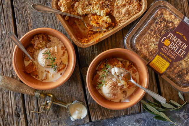 Are you on dessert duty this year? Before you start fretting, head to your local Trader Joe’s and stock up on all the holiday sweet treats the grocer is known for. Whether you’re looking for a delectable pastry you can keep in the freezer or want to get a little more creative with a boxed mix, the neighborhood market is all about saving your holiday dessert this year.