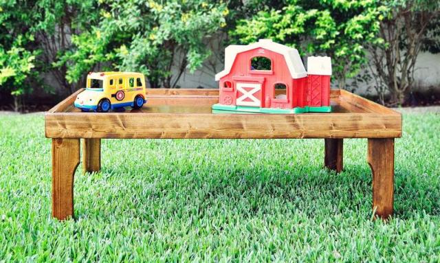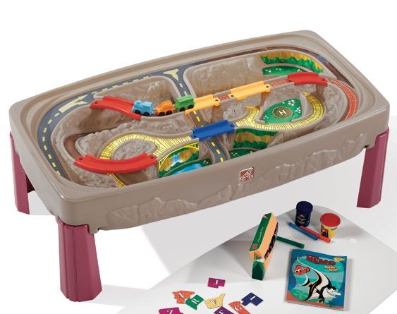 If you are looking for a ready-to-go option, this table from Step2 is a good choice. It has a train track and roadway built in so that kids can play with it right after it is set up. Stow your train gear under the included cover and then use it as a play table for drawing or craft projects.