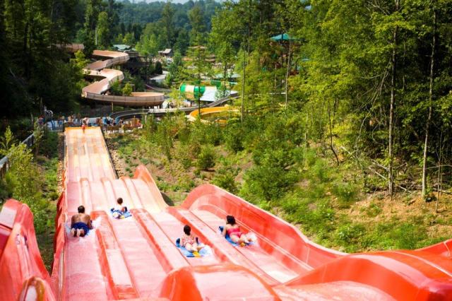 Nestled in the Smoky Mountains (the slides actually weave their way through the trees!), this forested oasis offers 23 slides for thrill seekers of all ages. Thrill rides include RiverRush, Tennessee’s first water coaster, and Fire Tower Falls, which plunges riders down a 70-foot freefall. There’s also a slew of little kid-friendly water features, including a 1,500-ft lazy river and Bear Mountain Fire Tower, a huge water playground.