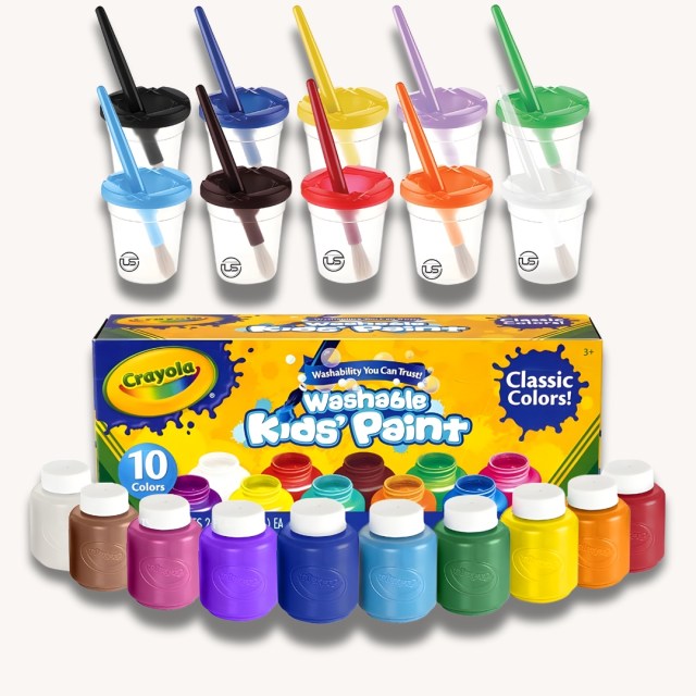 The finger-painting starter pack every parent secretly fears a little, but every kid loves. Non-toxic, fully washable, and comes with paint cups and brushes so you can keep the mess under control.