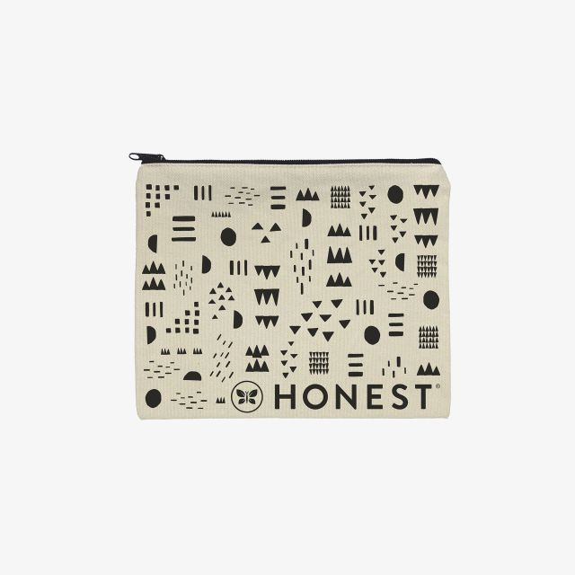 Keep everything you need for on-the-go fixes in this adorable canvas pouch with a geometric pattern.