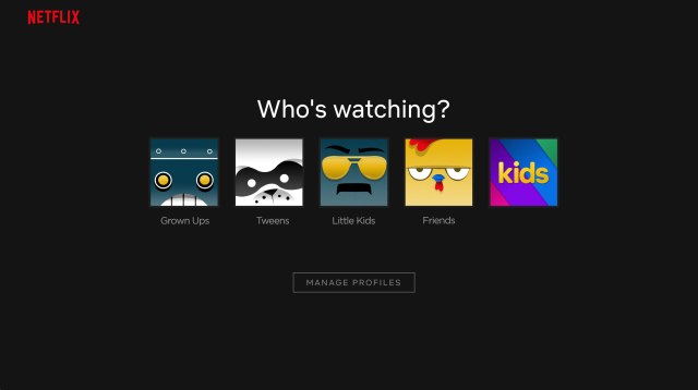 Although each paid Netflix account allows subscribers to create up to five distinct profiles, many families will create profiles based on individuals. Unless you and your spouse watch radically different programs on Netflix or your kids have completely divergent tastes, a better approach to profile management would be to create profiles based on groups or interests. For example, “Grown Ups,” “Tweens,” and “Young Kids” or “Kids Movie Night,” “Documentaries,” and “TV Favorites.” Since Netflix’s personalization algorithm is based on what people actually watch (or like and rate), clustering profiles by groups or interests will yield better personalization and more specific recommendations in the long run.