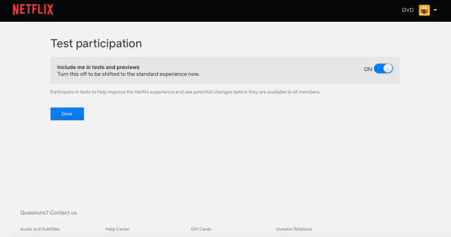 One of the easiest ways to get a jump on the latest Netflix features is by signing up to become a tester. In your Netflix account menu you’ll see a link for Test Participation, click the link and you’ll arrive at a page asking if you’d like to participate in the testing of new Netflix features. Set the toggle switch to “On” and you’ll get access to features not yet available to all users.