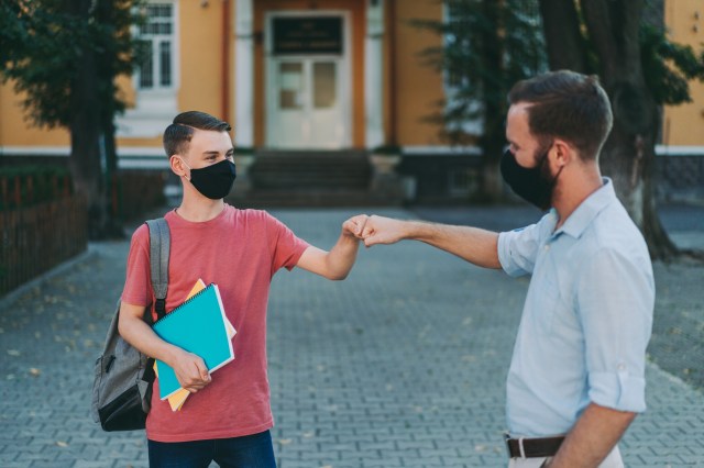 Writer Amber Guetebier says she and her son have developed a secret handshake, “We change them seasonally, and they are goofy. So after the love you's and hugs, we have a quick ‘handshake’ that says, I'll be here when you're done with this school thing."